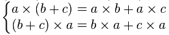 Pierścień (asocjatywny pierścień) - to mnóstwo R, na którym są zadane dwie operacje binarne: + i x (nazywane dodawaniem i mnożeniem), z następnymi właściwościami, wykonywanymi dla dowolnych a, b, c ∈R: